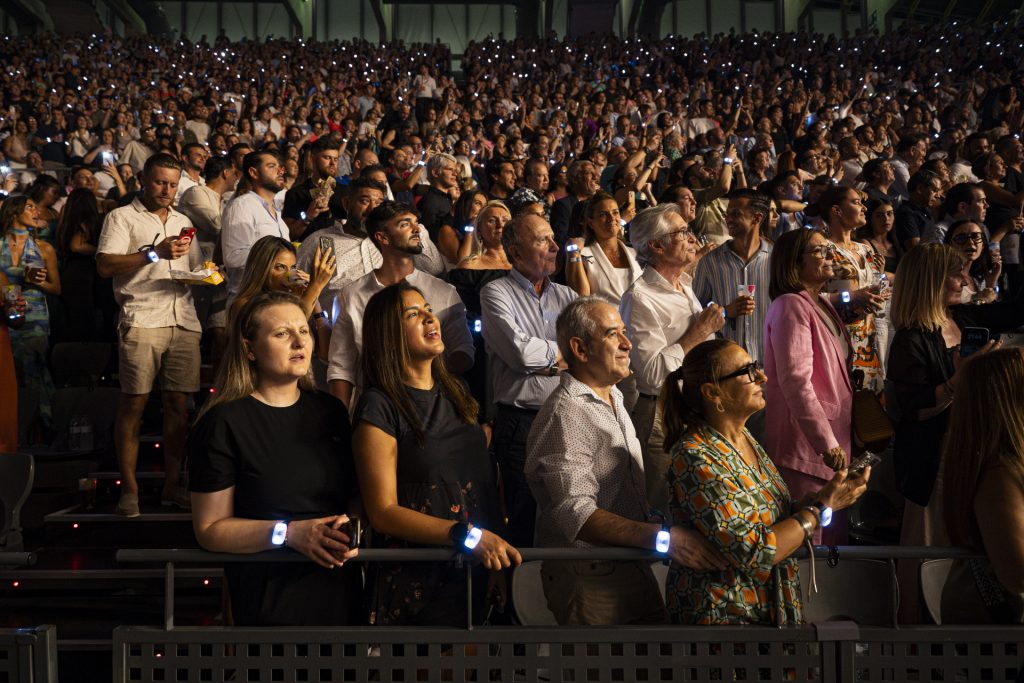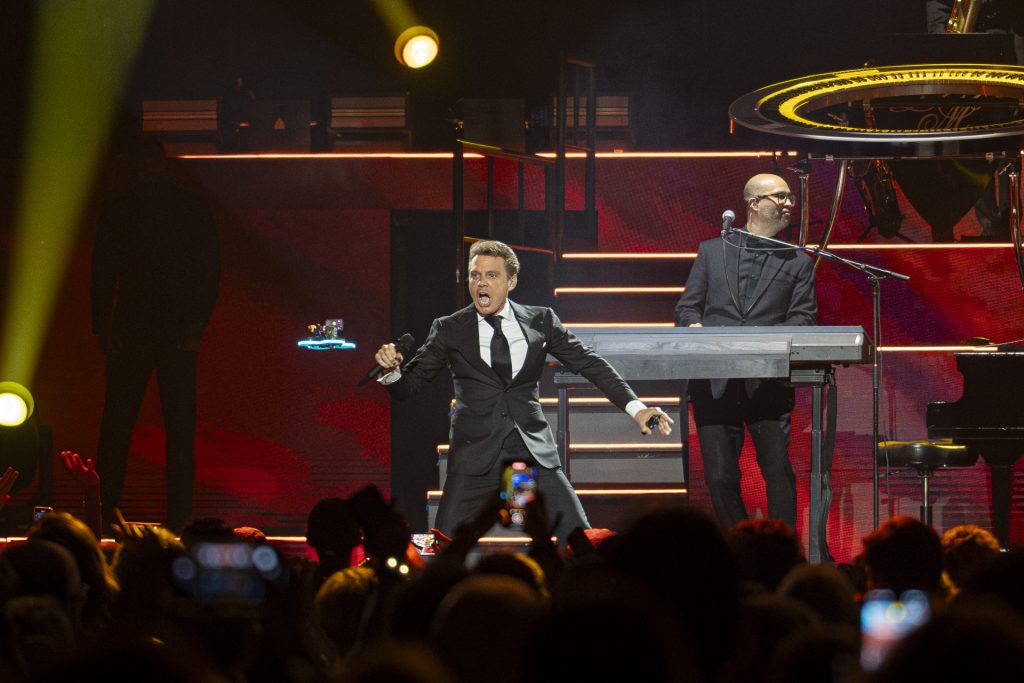 Desde el primer momento, Luis Miguel capturó la atención del público con una energía arrolladora. Abrió el espectáculo con “Será que no me amas”, una canción que puso a todos a bailar y cantar. A lo largo de la noche, el cantante no escatimó en esfuerzos, entregándose por completo en cada interpretación. Su voz potente y emotiva resonó en cada rincón del recinto, haciendo vibrar a los más de 14.000 asistentes.