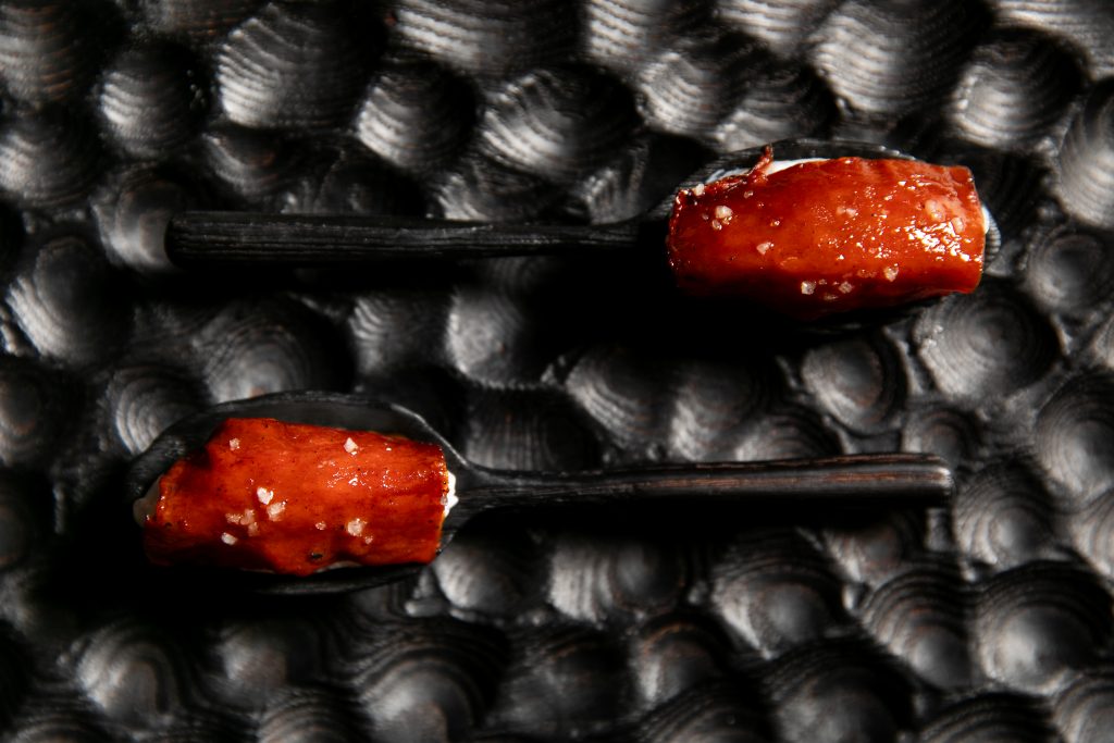 El dominio absoluto de las brasas convierte el fuego en el hilo conductor de una serie de platos que presentan los mejores productos de temporada en su momento óptimo de consumo. En Asador O’Pazo, los ingredientes se muestran naturales y reconocibles, realzados por el fuego en lugar de ser enmascarados. Como dice Óscar: “Lo que nosotros hacemos es echar fuego a las cosas, no cosas al fuego. Esto lo cambia todo”.
