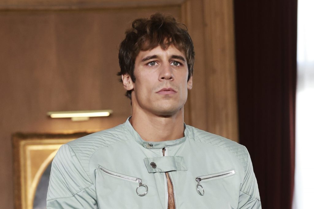 Uno de los momentos más comentados fue la aparición del actor Martiño Rivas, que debutó como modelo con un estilismo de aire romántico y silueta estructurada, encarnando a la perfección el espíritu de la colección. Su presencia sobre la pasarela fue recibida con ovación y se convirtió en uno de los rostros más fotografiados del evento.