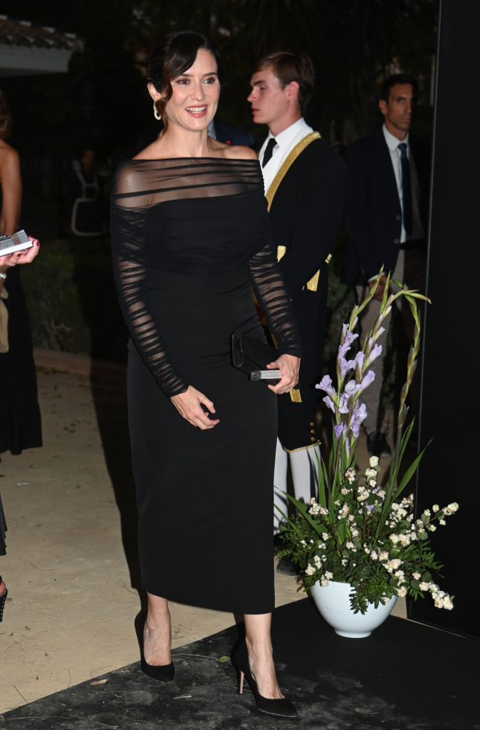 La presidenta lució un vestido largo negro, de la firma Victoria, creada por la diseñadora Vicky Martín Berrocal. Se trata del modelo Zaniah Negro, confeccionado en crepé, con escote bardot y drapeado en tul sobre los hombros y mangas, que aporta un efecto de transparencias sutiles. El diseño envuelve el cuerpo con una silueta entallada, elegante y sofisticada, y está disponible en la tienda online de la firma por 255 euros.
