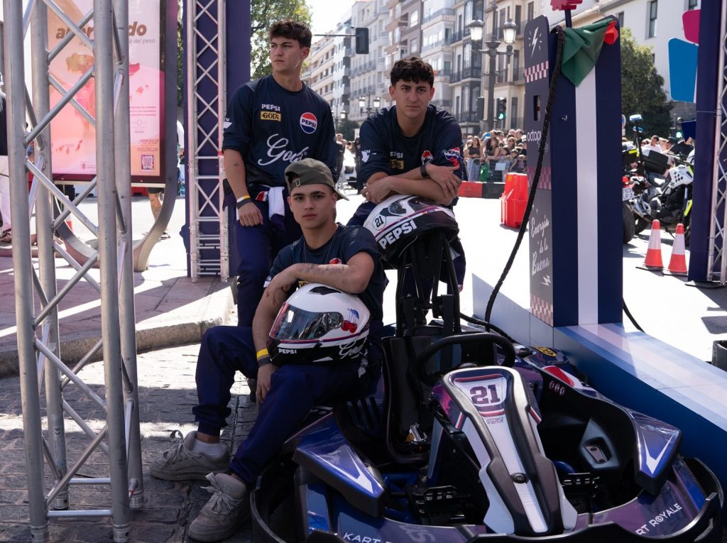 La participación de Pepsi en Kart Royale fue una de las más destacadas de la jornada. La marca presentó su propia escudería, liderada por los hermanos Javier y Eric Ruiz, conocidos como @xbuyer y @ericruiiz en TikTok, con 2 millones y 1 millón de seguidores respectivamente. El equipo lo completó Alen Vicente (@alenvicente), también miembro de la familia Buyer, con más de 800 mil seguidores. Los tres compitieron con un kart vinilado y equipamiento diseñado por Fake Gods, la firma de streetwear cofundada por Eric Ruiz, reforzando el vínculo entre moda urbana y deporte.