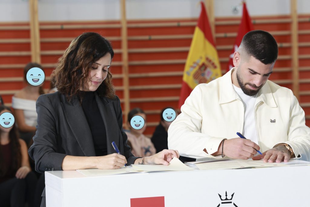 La presidenta de la Comunidad de Madrid, Isabel Díaz Ayuso, y el campeón mundial de artes marciales mixtas Ilia Topuria firmaron un protocolo de colaboración para impulsar acciones de prevención contra el acoso escolar y el consumo de drogas en centros educativos. El acuerdo, presentado en el IES Antonio Fraguas Forges de Madrid, forma parte del Plan Regional contra las Drogas 2024–2027, que incluye más de 90 medidas y una inversión de 200 millones de euros.