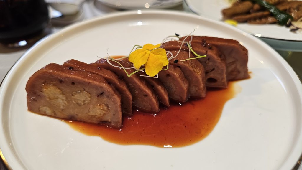 En nuestra visita probamos varios platos que merecen ser recordados. Los brotes de bambú estofados en aceite, una espectacular sopa de pollo con vegetales, unos baos líquidos de cerdo que estaban riquísimos y un solomillo con algas realmente destacado. En su carta, también podemos encontrar las costillitas de cerdo ibérico en salsa de ciruela, el lotus relleno de arroz glutinoso con miel y flores y, además, recomendamos prestar atención a sus dimsum especiales hechos a mano, pequeños bocados que demuestran técnica y paciencia.