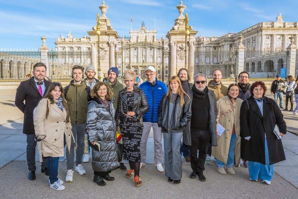 El creador de la serie, Javier Olivares, y su protagonista, Kimberly Tell, se unieron a esta ruta histórica, acompañados por María Eizaguirre, directora de Comunicación y Participación de RTVE, y José Pastor, director de Ficción. El punto de partida no fue casual: el edificio situado en el número 88 de la calle Mayor de Madrid, desde donde el anarquista Mateo Morral lanzó una bomba contra el carruaje real el 31 de mayo de 1906, el mismo día de la boda de Alfonso XIII y Victoria Eugenia. Allí mismo, junto al monumento que conmemora el atentado, el equipo reflexionó sobre el impacto emocional y político de aquel suceso que abre el primer capítulo de la serie, Bodas de sangre.