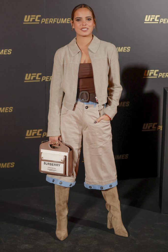 En un evento dominado por estilismos oscuros y sobrios, Gloria Camila se convirtió en la nota discordante con un conjunto que apostó por los tonos tierra y el contraste cromático, marcando una diferencia visual y estilística en la presentación del nuevo perfume de la UFC en Madrid.