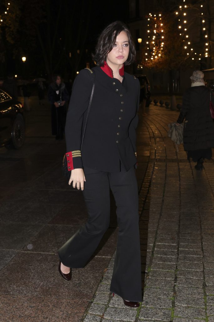 También estuvo presente Ana Botella, exalcaldesa de Madrid, que sorprendió con un traje de terciopelo negro bordado con rosas y detalles en verde, acompañado de una blusa con chorrera en tonos malvas.