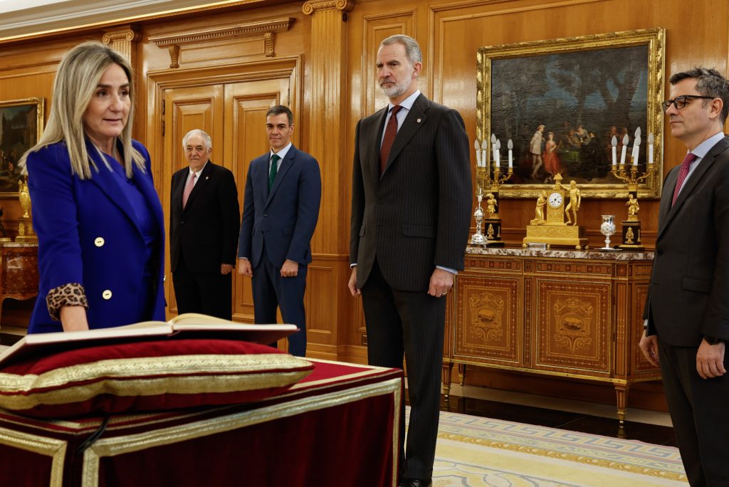 Casa Real difundió imágenes del momento a través de su cuenta oficial en X, donde se ve a las dos ministras posando junto al monarca tras la promesa de sus cargos.