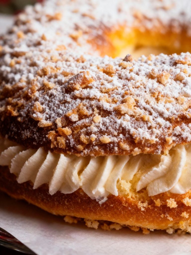 El roscón mantiene la esencia del clásico, con una masa ligera y aromática, trabajada mediante fermentaciones lentas y técnicas tradicionales. Para su elaboración se utilizan ingredientes seleccionados, como vainilla ecológica francesa, harinas de calidad, ralladuras frescas de naranja y limón obtenidas cada día, huevos frescos y mantequilla premium. La pieza se completa con su decoración habitual de azúcar perlado y almendra tostada, que aporta textura y aroma.