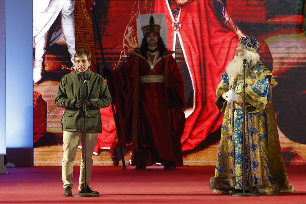 Tras el desfile, Almeida dio la bienvenida oficial a los Reyes Magos desde Cibeles, destacando el carácter acogedor de Madrid: “Habéis llegado a una ciudad maravillosa, que acoge, que recibe, que comparte entre todos”.