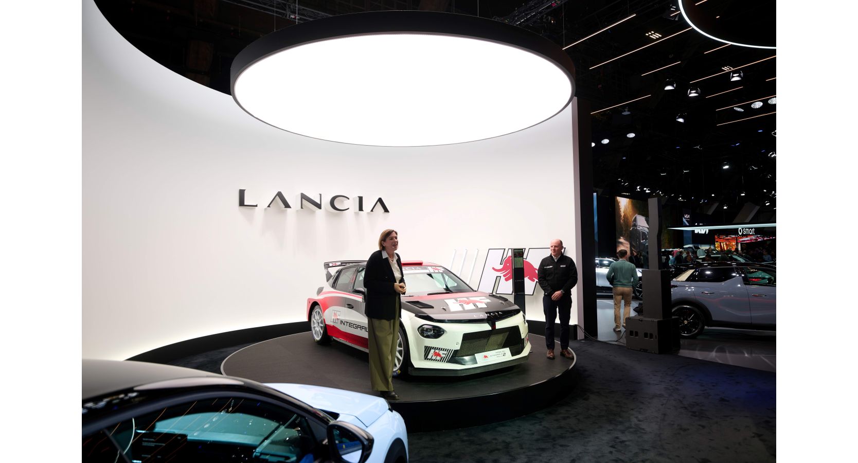 Hasta el próximo 18 de enero, los visitantes pueden recorrer la evolución de la familia Ypsilon a través de una exposición que combina elegancia urbana, deportividad y ADN racing. El momento más simbólico llegó el día inaugural del salón, cuando la CEO de Lancia, Roberta Zerbi, subió al escenario junto a Miki Biasion, doble campeón del mundo de rally, para presentar el Ypsilon Rally2 HF Integrale, el modelo con el que la marca regresará oficialmente al Mundial de Rally en la categoría WRC2 a partir de la temporada 2026.