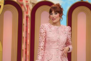 La presentadora apuesta por un traje fluido de la firma española Is Coming, uno de los looks más comentados de la noche.