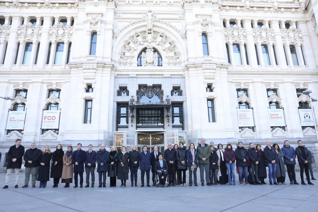 El Ayuntamiento de Madrid se detuvo este lunes al mediodía para rendir homenaje a las víctimas del trágico accidente ferroviario de Adamuz (Córdoba), que ha dejado al menos 41 fallecidos y más de un centenar de heridos. El alcalde José Luis Martínez-Almeida presidió el minuto de silencio convocado a las puertas del Palacio de Cibeles, acompañado por concejales de todos los grupos municipales y por trabajadores del consistorio.