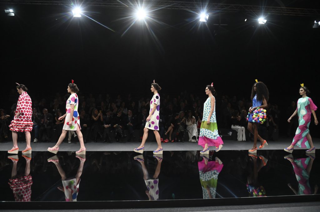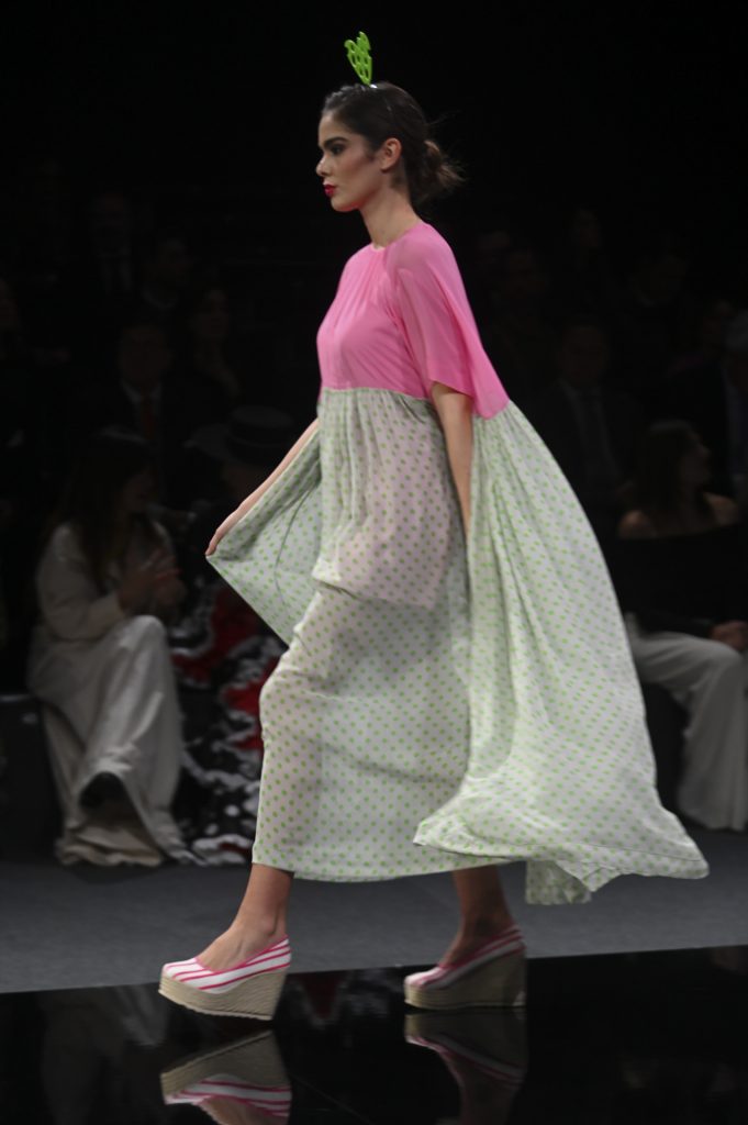 Fiel a su espíritu imprevisible, Ágatha ofreció un desfile improvisado, una selección de piezas que definió como “lo que tenía a mano”, pero que aun así condensaban su sello: geometrías pop, colores vibrantes y esa mezcla juguetona que la ha convertido en una figura irrepetible de la moda española. Aunque alejada de los códigos tradicionales del traje de flamenca, su propuesta conectó con el público por su energía y por la manera en que reinterpretaba el flamenco desde la libertad creativa.