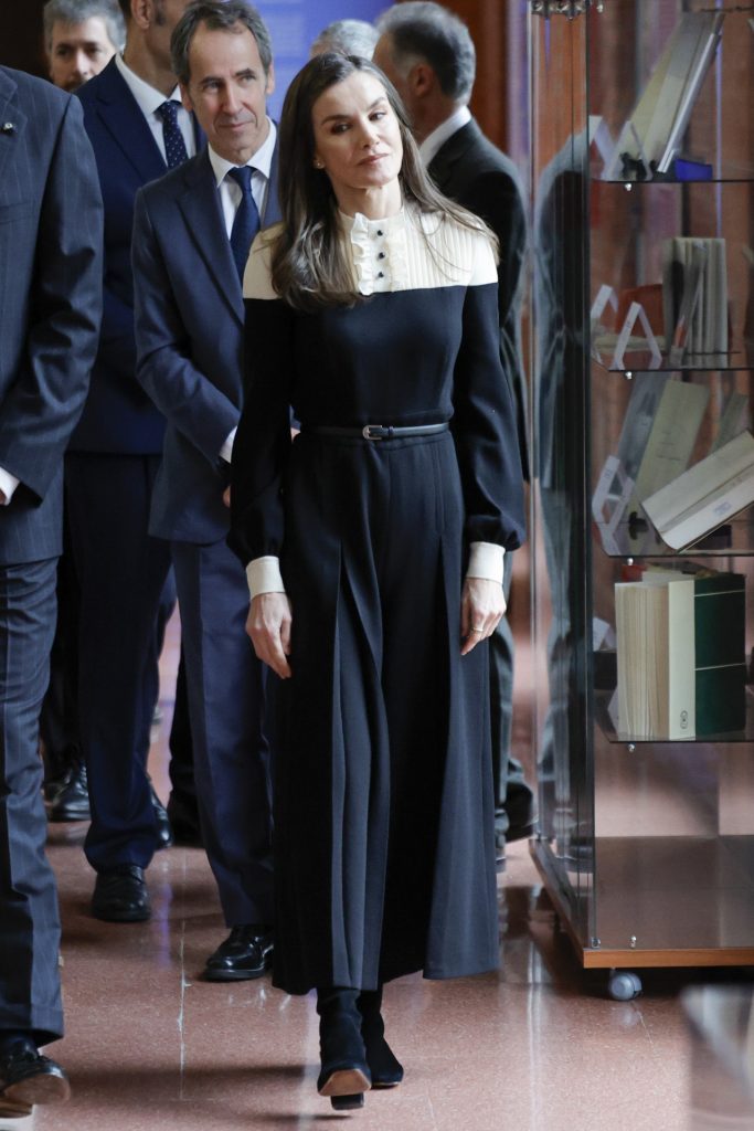 El mono ha sido descrito como un look “monacal” o incluso “controvertido”, una reacción que tiene mucho que ver con su mezcla de rigidez victoriana y minimalismo moderno. Sin embargo, en Letizia funciona con absoluta naturalidad: la prenda encaja con su predilección por las piezas estructuradas, los contrastes gráficos y los diseños con narrativa propia, esos que aportan presencia sin necesidad de artificios.