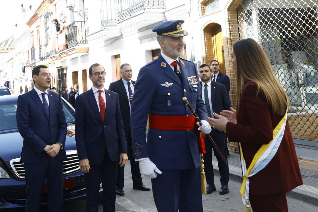 La agenda del rey incluyó varios actos oficiales. En La Rábida inauguró una placa conmemorativa del centenario, acompañado por autoridades locales, autonómicas y militares. Posteriormente recorrió a pie la calle Rábida hasta la plaza Aviador Ramón Franco, donde saludó a los vecinos entre vítores y banderas de España y Argentina.